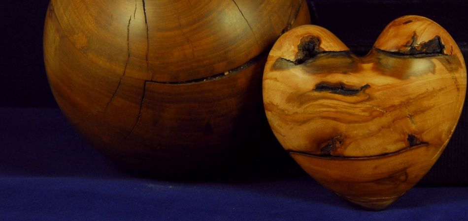 "Hand charmers: Sphere of Applewood and Cherry heart. Gift by Bernd Pfister"